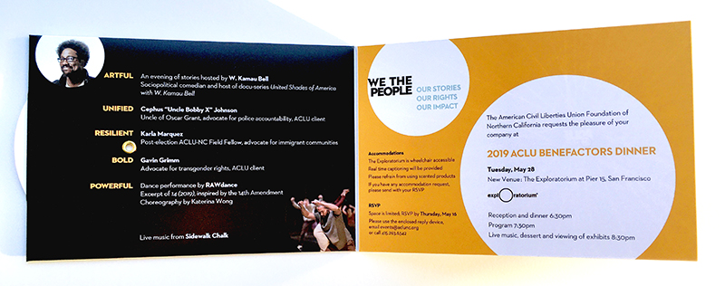 “We the People”, ACLU’s annual event for donors at the Exploratorium in San Francisco, featured stories from W. Kamau Bell and honored activists Cephus “Uncle Bobby X” Johnson, Karla Marquez, and Gavin Grimm.