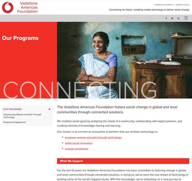 “Connecting for Good” is a universal theme that runs through Vodafone’s foundations worldwide. The Foundations mobilize communities by bringing together people from all sectors, including business, nonprofit, government, and employee organizations, as well as their customer base, to resolve shared problems and advance social change.